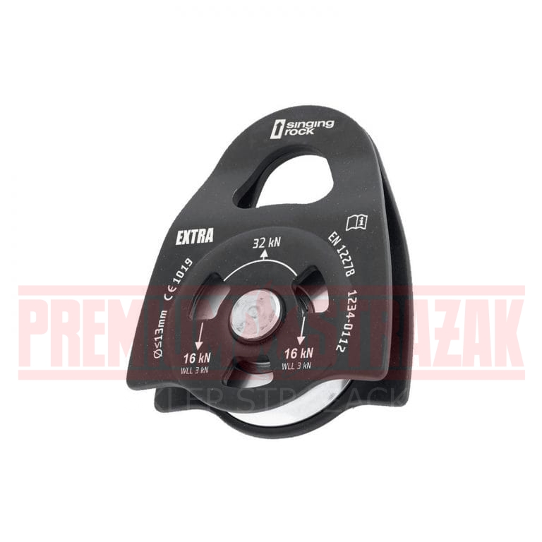 Bloczek PULLEY EXTRA pojedynczy, dla lin nylonowych, przeznaczony do zastosowań w transporcie pionowym i ratownictwie, o dużej efektywności.