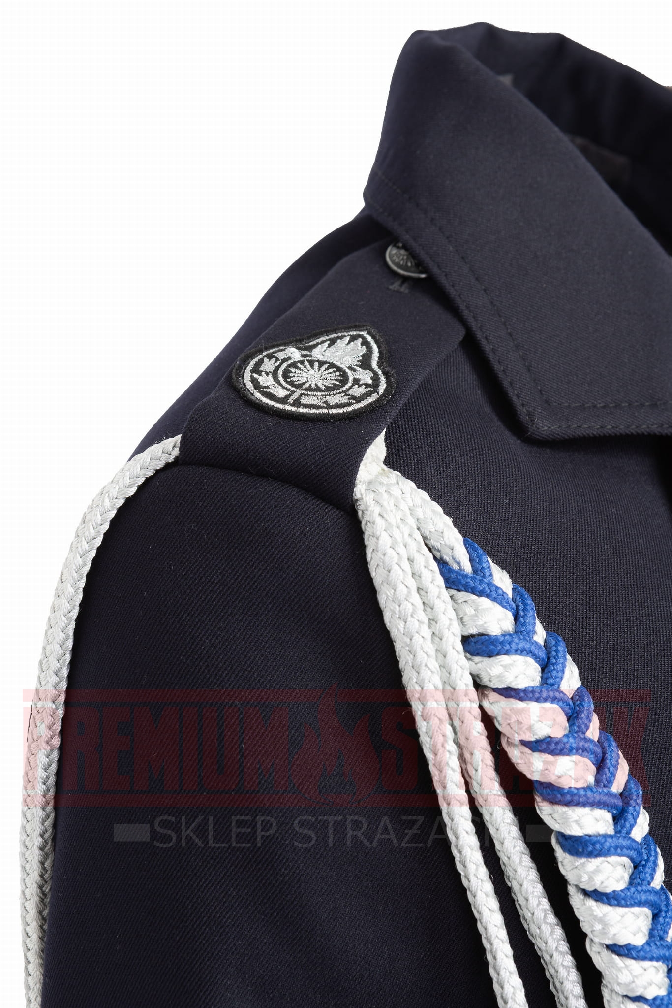 Marynarka lekko dopasowana, jednorzędowa, zapinana na cztery metalowe, oksydowane guziki. Na ramionach marynarki umieszczone są pagony z naszytymi ognikami. Pod prawym pagonem, na szwie barkowym przyszyty jest guzik do przypięcia sznura galowego. Poniżej talii znajdują się dwie kieszenie cięte z klapkami. Marynarka od wewnątrz wykończona jest podszewką w kolorze dopasowanym do tkaniny wierzchniej.